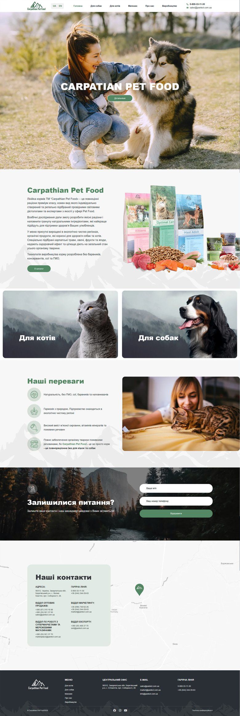 Carpathian Pet Food — каталог кормів для тварин